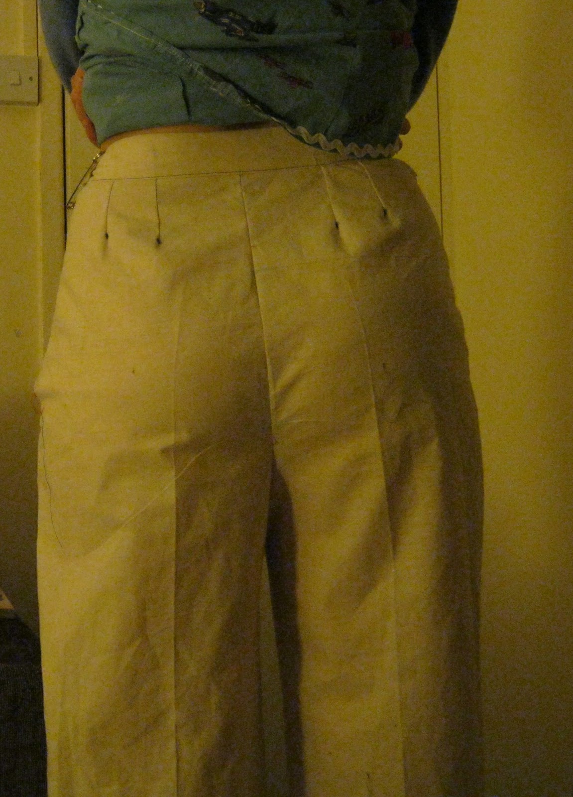 My next step will be to make up a second toile. I'm going to add a small amount to the width of the trousers, roughly down the line of the centre crease. I'm hoping that will releave some of the tightness across the seat. I'll also deepen the crotch curve a little more, as doing this a bit has helped a lot already. Then I'll go back to looking at the darts. The shape of these is already so different to the pattern piece it's a wonder they fit at all to begin with!